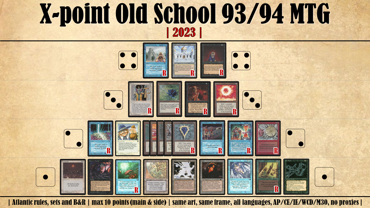 Le format « Old school » est le format de mtg à ses débuts (60 cartes, limite à 4, éditions de base alpha bêta unlimited, les extensions jusqu’à arabian ou legend, je ne sais plus …).