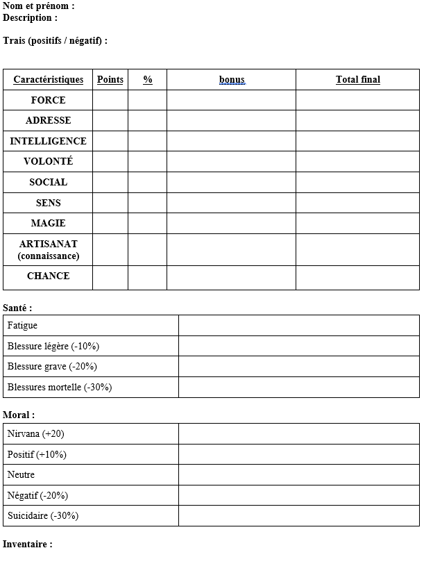 Fiche personnage :